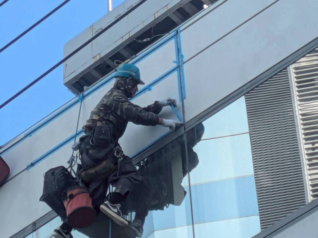 ロープ工法によって、各階のシーリング部分に直接アクセスできるため、足場がない状態でも確実な施工が可能です。また、屋上やバルコニーの防水工事も対応範囲に含まれており、建物全体の防水性能を高めるためのメンテナンスにも役立ちます。