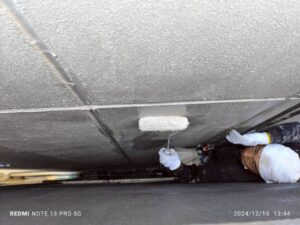 ロープ工法では、補修が必要な箇所へ作業員がピンポイントでアプローチできるため、部分的な補修にも適しています。打診調査や目視点検を行いながら、劣化部分を特定し、浮きや剥離のある箇所を適切に処理することができます。